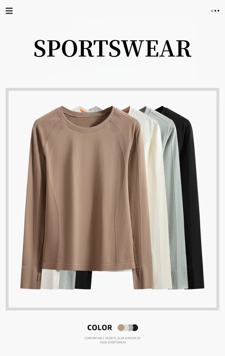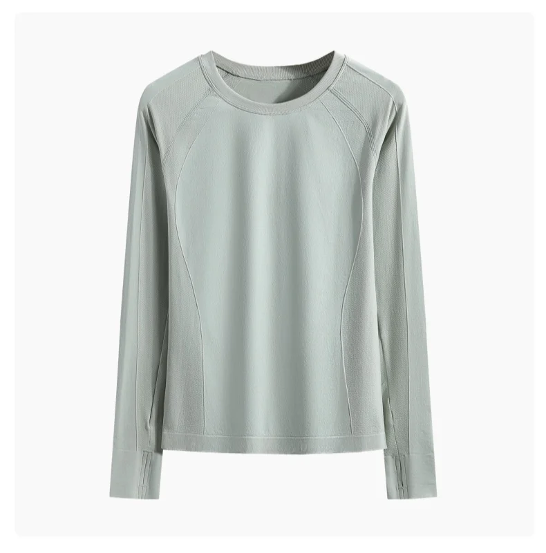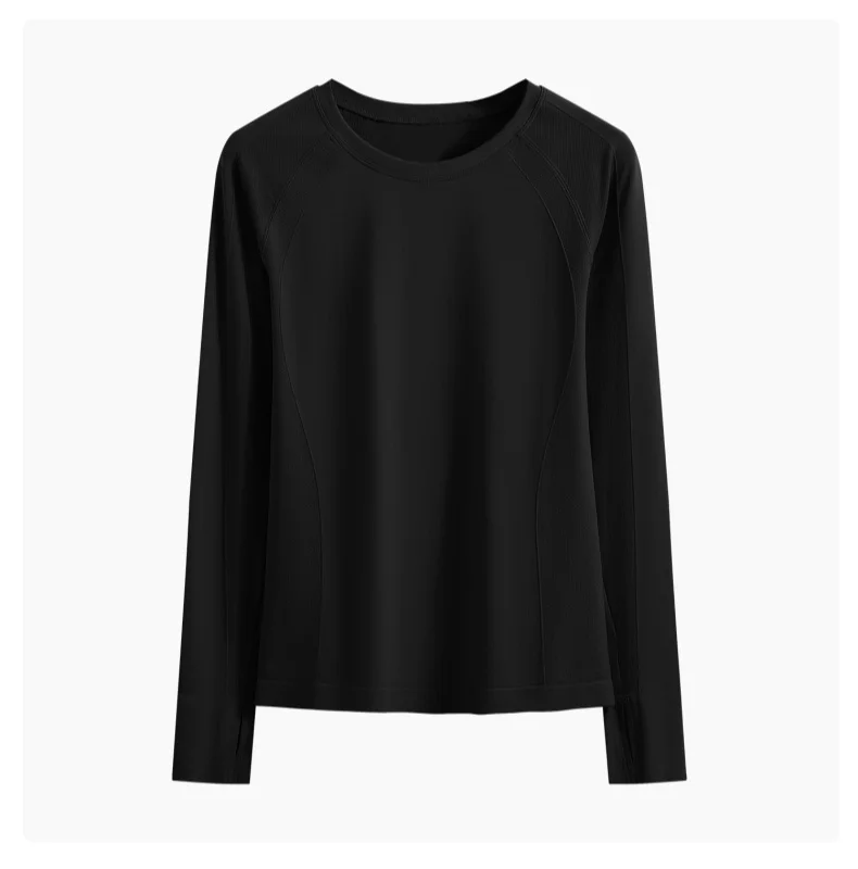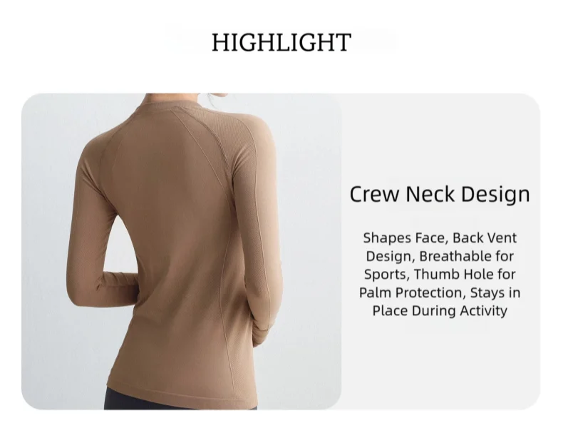 Cropped Long Sleeve Athletic Top - Slim Fit Crew Neck